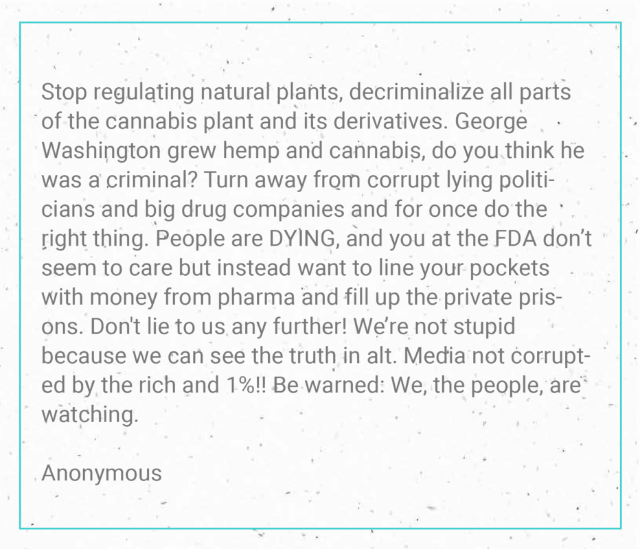 Right now, most of the comments in favor of increased regulation for hemp-derived products are detailed, well-written and supported by evidence. Meanwhile, a majority of the comments supporting hemp-derived products are either brief testimonials, rants or insults.