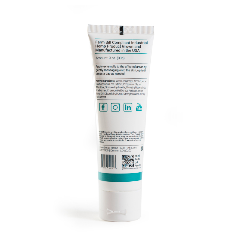 Water, Isopropyl Alcohol, Aloe Barbadensis Leaf Extract, Propylene Glycol, Menthol, Dimethyl Isosorbide, *Hemp Oil Extract, Carbomer, Chamomilla Recutita (Matricaria) Extract, Arnica Montana Flower Extract, Emu Oil, Phenoxyethanol, Ethylhexylglycerin, Sodium Hydroxide